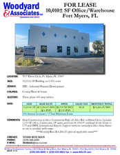 New Construction in Alico Commercial Park off Alico Rd. on Drew Circle. Includes 1,103 SF office, 2 restrooms, 600 amp 3 phase electric, 18’ eaves, and four (4) 14’x14’ overhead doors. Close to I-75 and SWFL International Airport. Support services currently in Alico Area. Great access to arterials traffic ways. ***Monthly Rent $16,266.25 (plus all applicable taxes)***