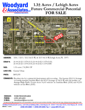 Excellent site for commercial development with re-zoning. Site features 206± ft. frontage on heavily travelled Sunshine Blvd. and 403±' frontage on 3rd St W with full median cut. Average Daily Traffic Counts show 14,410 vehicles on Sunshine Blvd. (2026) and 45,300 vehicles on Lee Blvd. (2025).